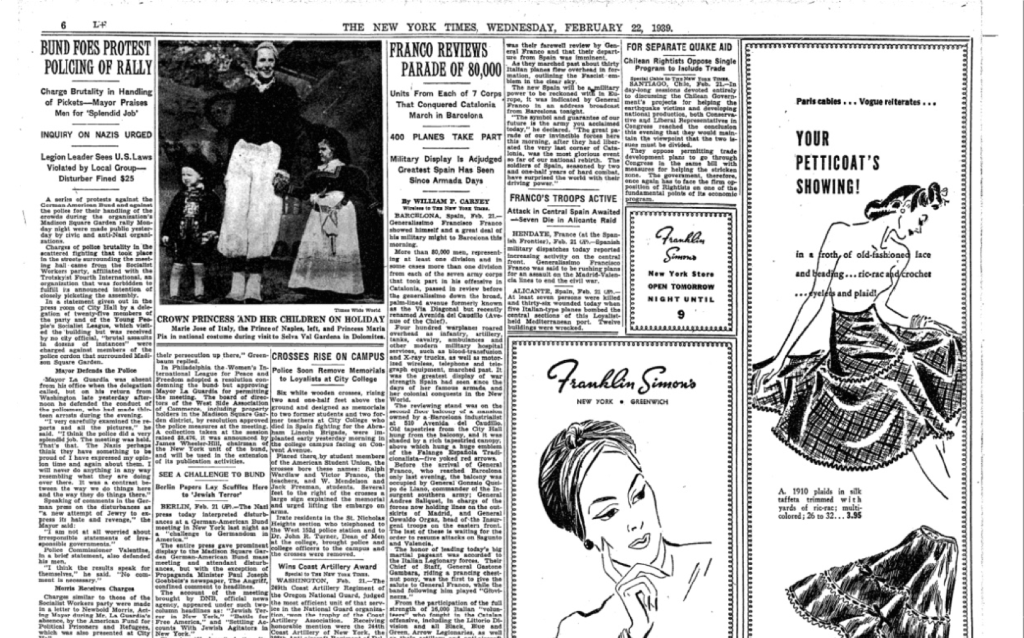 NEW YORK TIMES: February 22, 1939 You can find the full article on the New York Times Time Machine here. Share this: Click to share on X (Opens in new window) X Click to share on Facebook (Opens in new window) Facebook Like Loading...